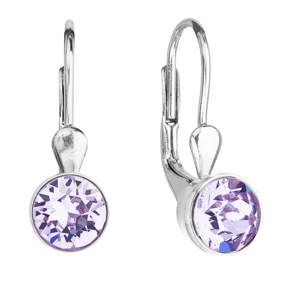 Strieborné náušnice visiace s kryštálmi fialové okrúhle 31112.3 violet