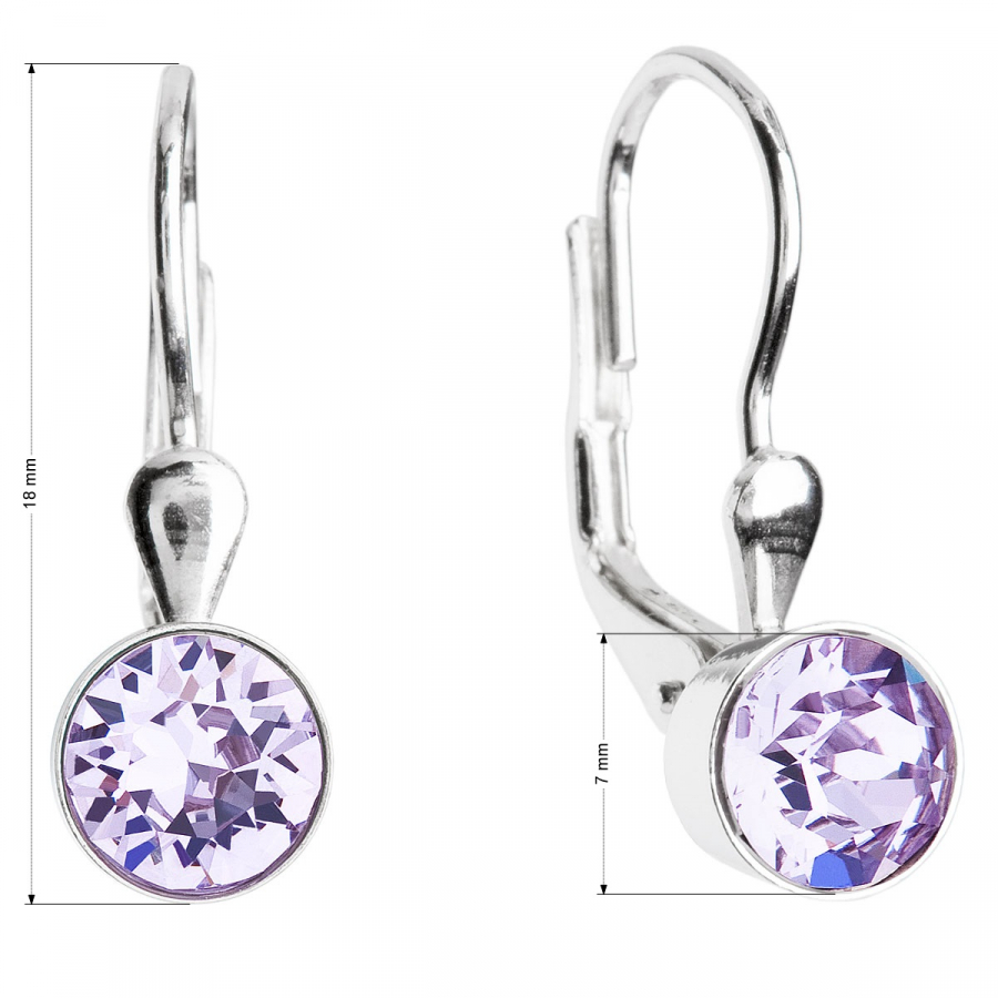 Parametre strieborných visiacich náušníc s kryštálmi Swarovski fialové okrúhle 31112.3 violet
