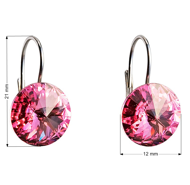 Parametre strieborných visiacich náušníc s kryštálmi ružové okrúhle 31106.3