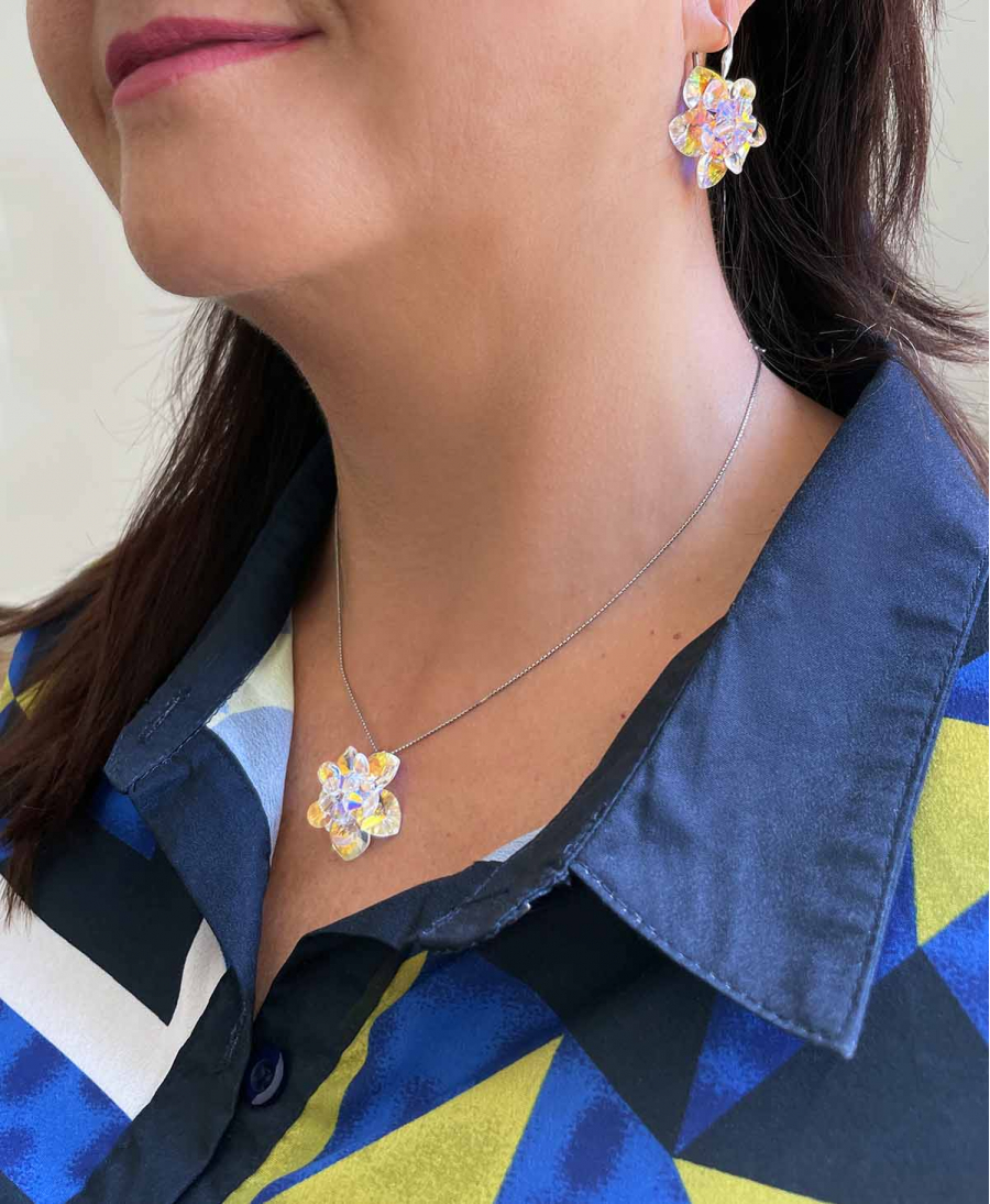 Nechajte svoje uši rozkvitnúť so striebornými kvietkovými náušnicami vo farbe s ab efektom. Zaručujeme vám, že tieto náušnice v tvare kvietky rozveselia akýkoľvek outfit!