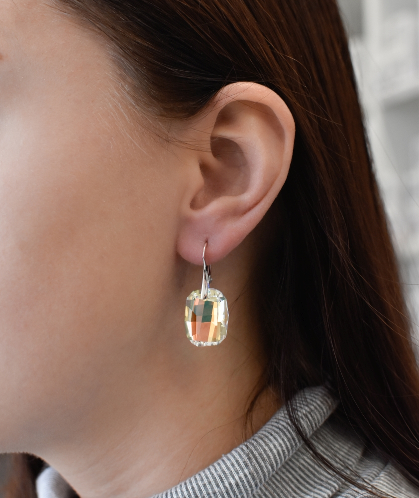 Buďte veselá a očarujúce ako letná dúha! Obdĺžnikové náušnice blýskajú svojim AB Swarovski kryštálom na všetky strany.