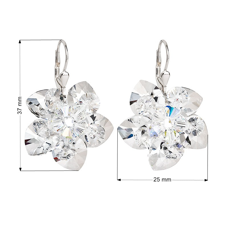 Parametre strieborných visiacich náušníc s kryštálmi Swarovski biela kvietka 31130.1