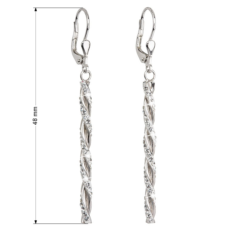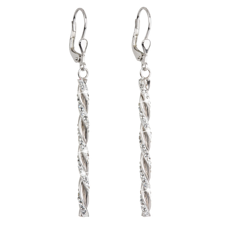 Strieborné náušnice visiace s kryštálmi Swarovski biele 31128.1