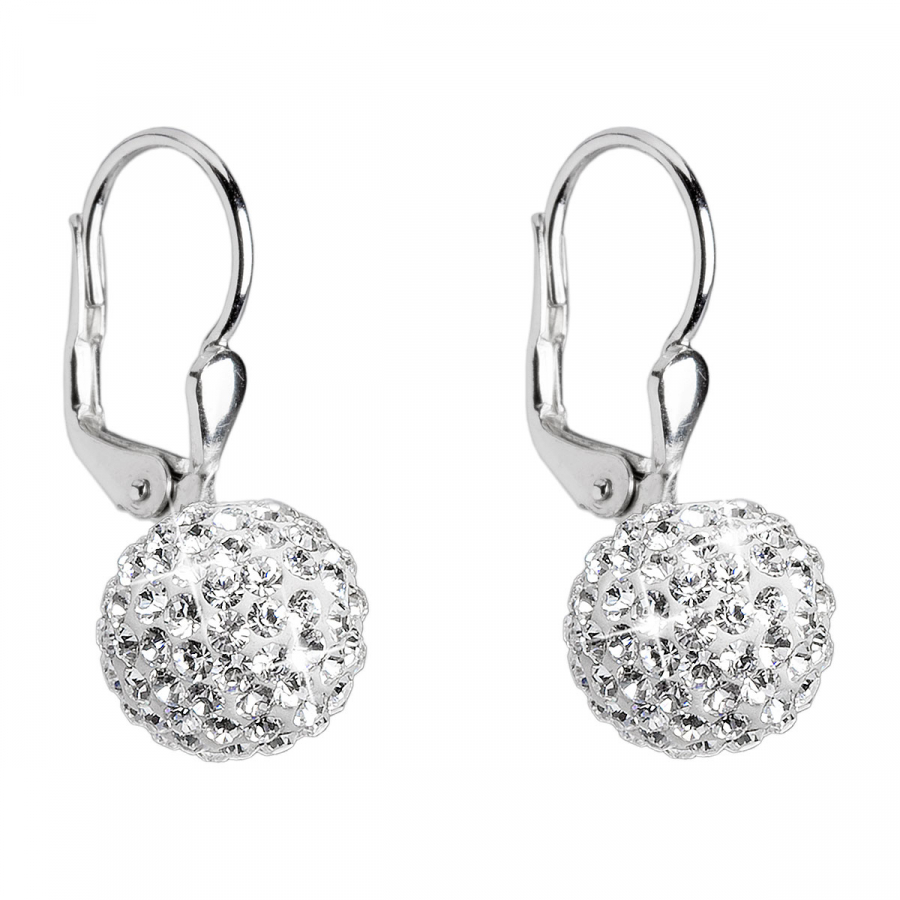 Strieborné náušnice visiace s kryštálmi Swarovski biele guličky 31110.1