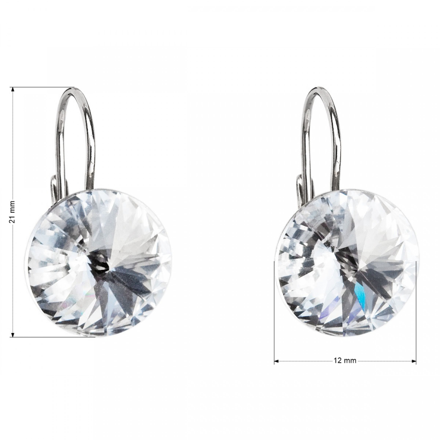 Parametre strieborných visiacich náušníc s kryštálmi Swarovski biele okrúhle 31106.1