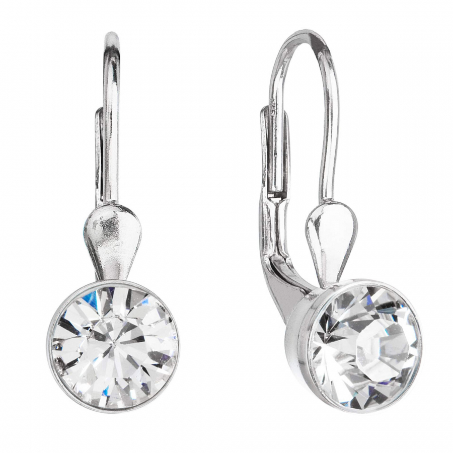 Strieborné náušnice visiace s kryštálmi Swarovski biele okrúhle 31112.1