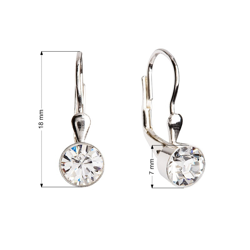 Parametre strieborných visiacich náušníc s kryštálmi Swarovski biele okrúhle 31112.1