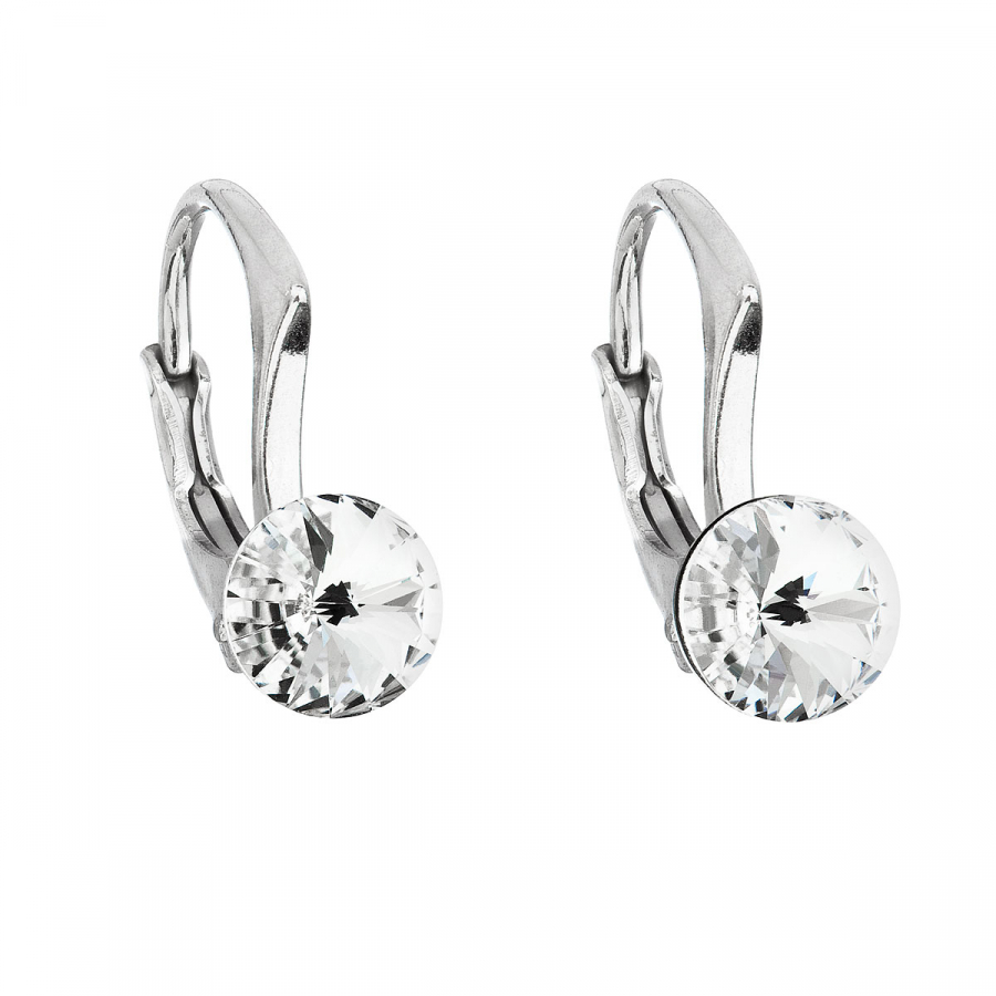 Strieborné náušnice visiace s kryštálmi Swarovski biele okrúhle 31230.1