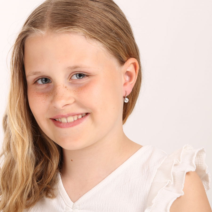Náušnice sú vyrobené zo striebra o rýdzosti 925/1000 s povrchovou úpravou ródiom a sú zdobené 6 mm širokým okrúhlym Swarovski kryštálom v bielej farbe. Náušnice zapnete na klapku , ktorá ich spoľahlivo ochráni proti nechcenej strate. Do náušníc nie je pridaný nikel , a tak ich bez obáv môžu nosiť aj alergici.