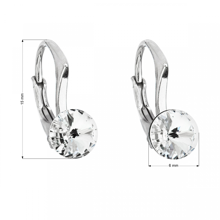 Parametre strieborných visiacich náušníc s kryštálmi Swarovski biele okrúhle 31230.1