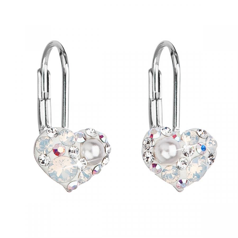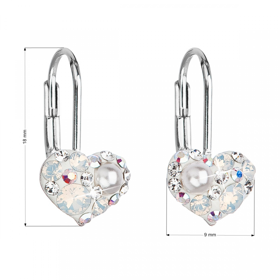 Visiace náušnice 31125.9 v tvare srdca sú vyrobené zo striebra o rýdzosti 925/1000 s povrchovou úpravou ródiom a sú bohato zdobené malými trblietavými kryštálmi Swarovski a perličkou v bielej farbe. Náušnice zapnete na klapku , ktorá ich spoľahlivo ochráni proti nechcenej strate. Do náušníc nie je pridaný nikel , a tak ich bez obáv môžu nosiť aj alergici.