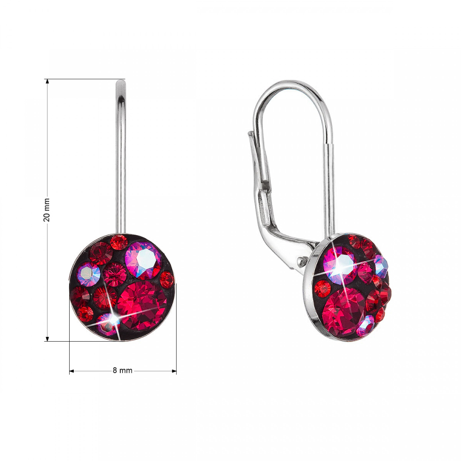 Strieborné náušnice visiace s kryštálmi Swarovski červené malé 31321.3 cherry