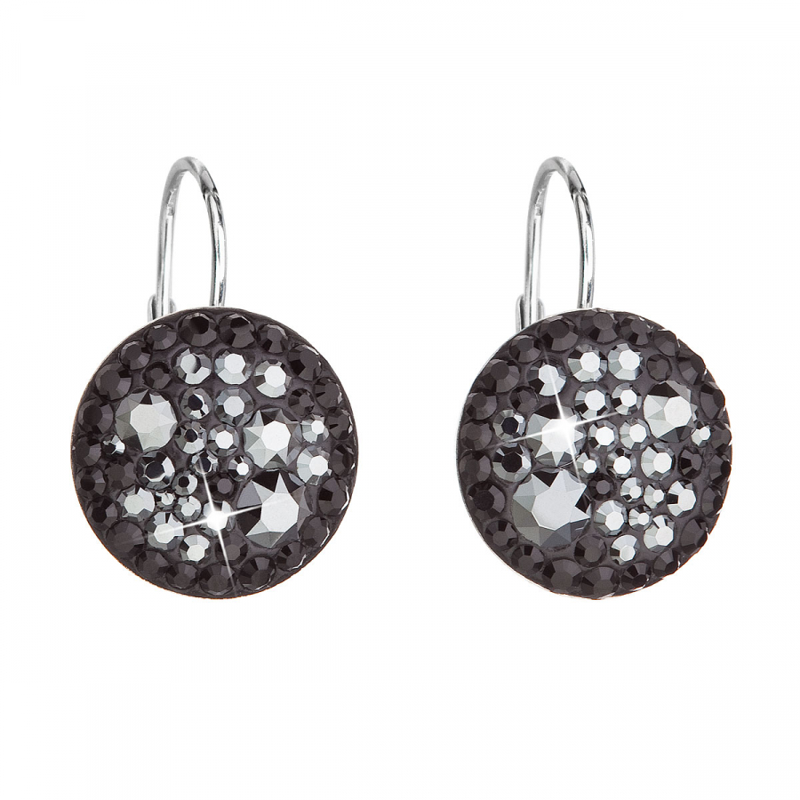 Strieborné náušnice visiace s kryštálmi Swarovski čierne okrúhle 31176.5 hematite