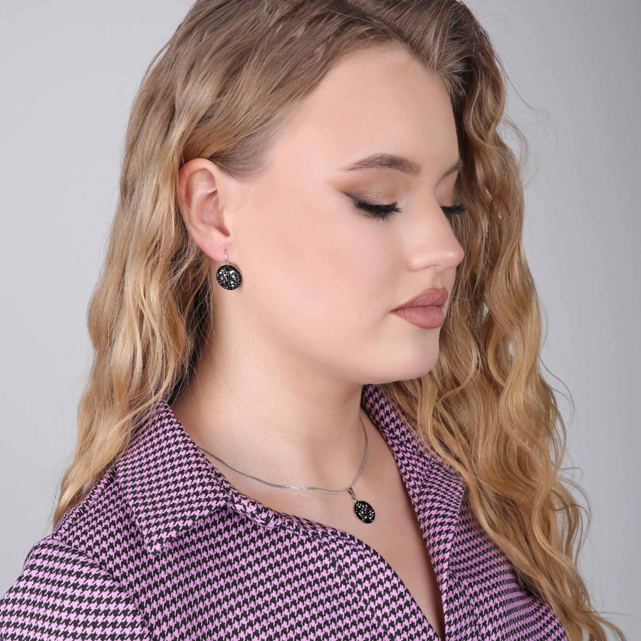 Strieborné okrúhle visiace náušnice 31176.5 hematite septembra mnohých Swarovski kryštály. Čierna farba kryštálov korešponduje s rhodiovaným striebrom 925/1000, z ktorého sú náušnice vytvorené. Rhodium udrží šperk v skvelej forme - bez zažltnutia aj sčernania. Zároveň chráni náušnice 31176.5 hematite proti poškriabaniu. Šperk neobsahuje nikel, je teda vhodným darčekom aj pre alergikov.