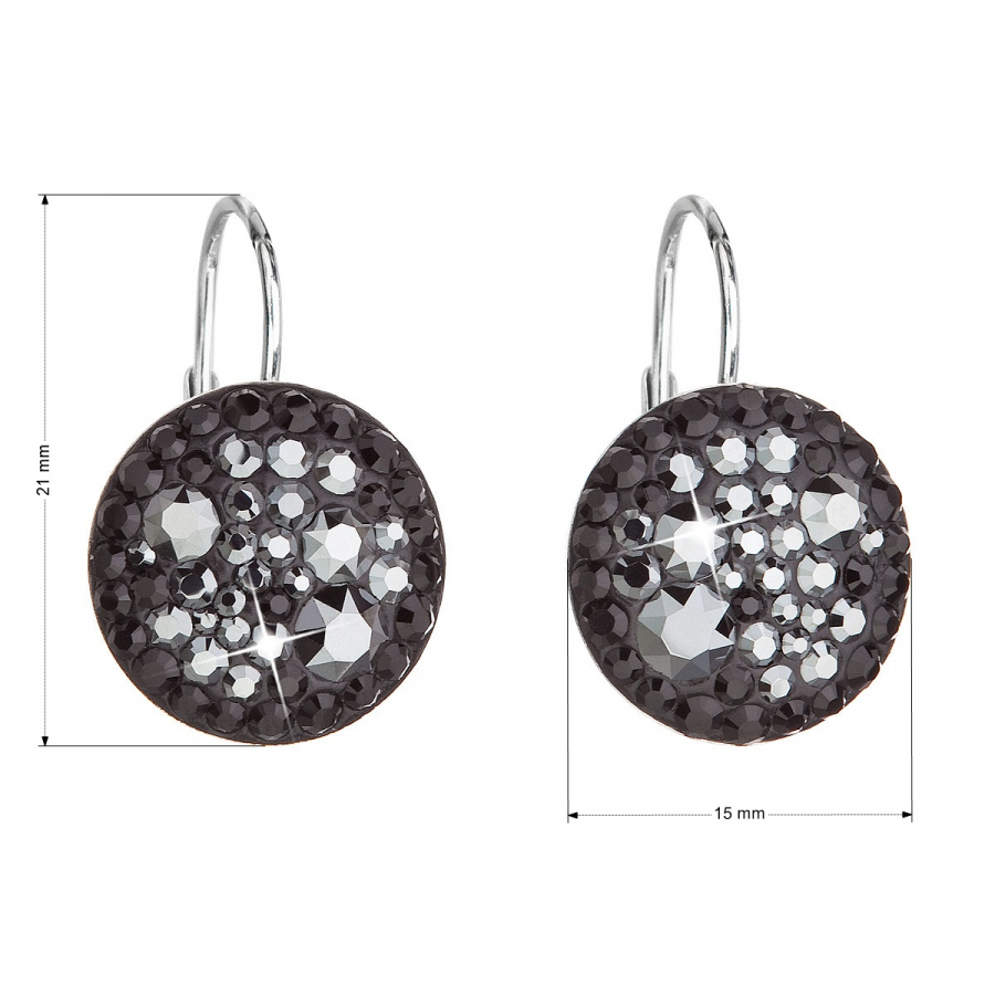 Parametre strieborných náušníc visiace s kryštálmi Swarovski čierne okrúhle 31176.5 hematite