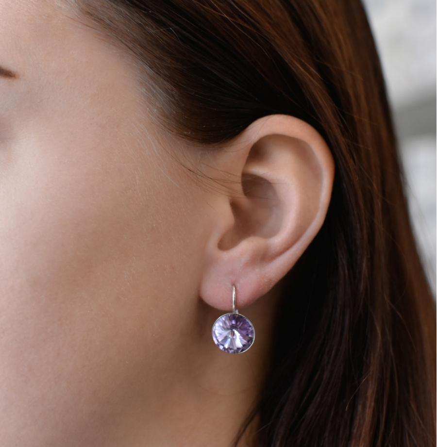 Parametre strieborných visiacich náušníc s kryštálmi Swarovski okrúhle 31106.3 violet