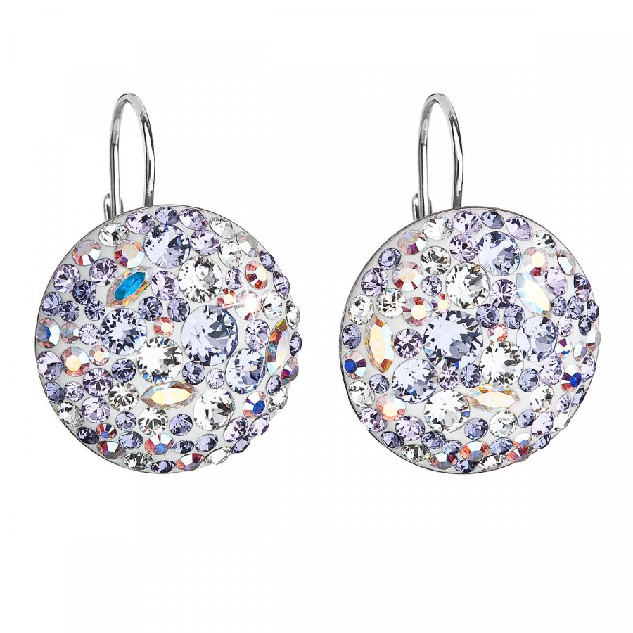 Strieborné náušnice visiace s kryštálmi Swarovski fialové okrúhle 31161.3 violet