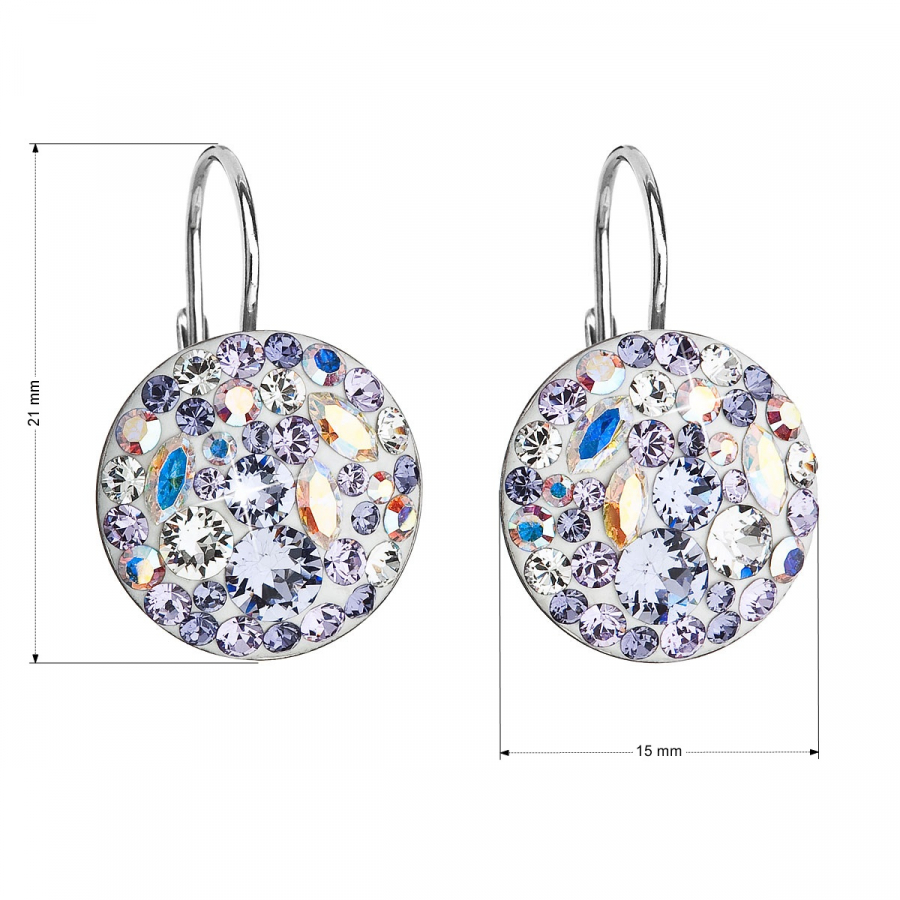 Parametre strieborných náušníc visiace s kryštálmi Swarovski fialové okrúhle 31176.3 violet