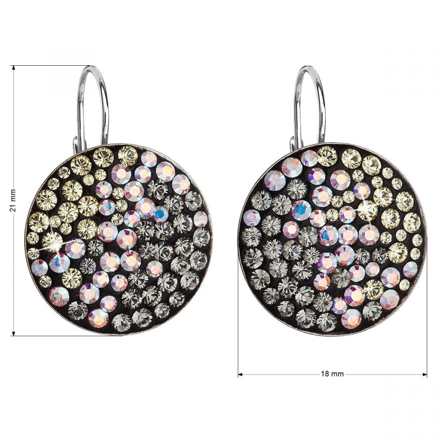 Strieborné náušnice visiace s kryštálmi Swarovski mesačné okrúhle 31161.3 moonlight