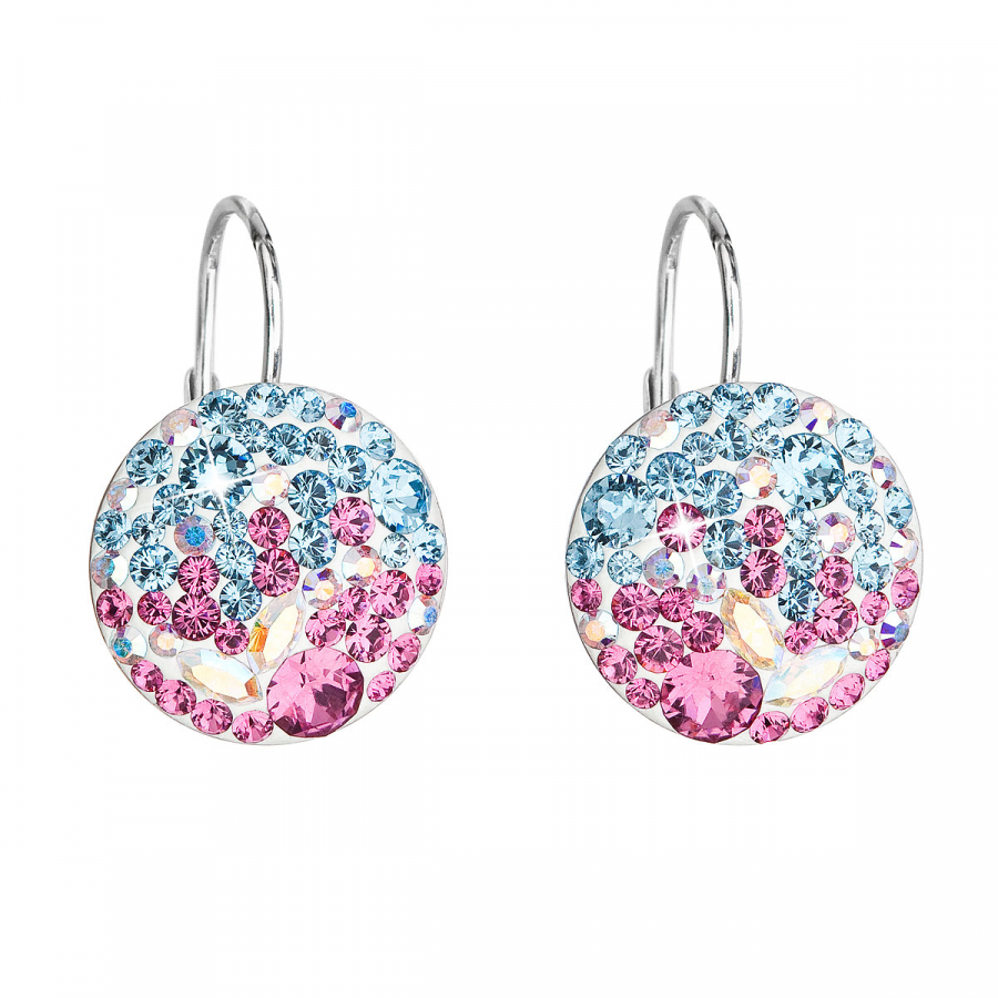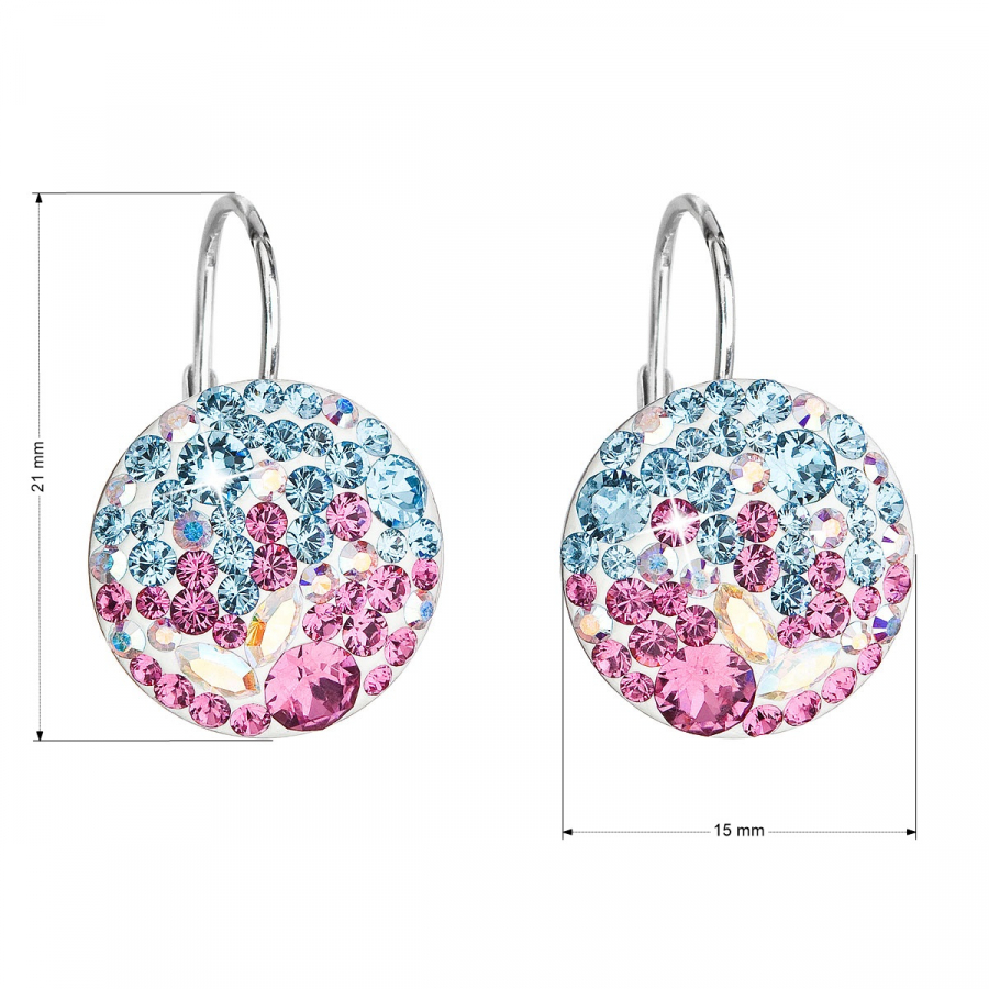 Strieborné náušnice visiace s kryštálmi Swarovski mix farieb okrúhle 31176.3 water lilly
