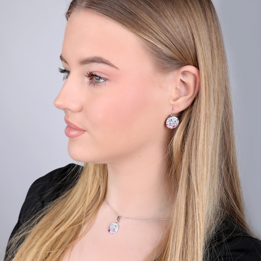 Parametre strieborných náušníc visiace s kryštálmi Swarovski mix farieb okrúhle 31176.3 water lilly