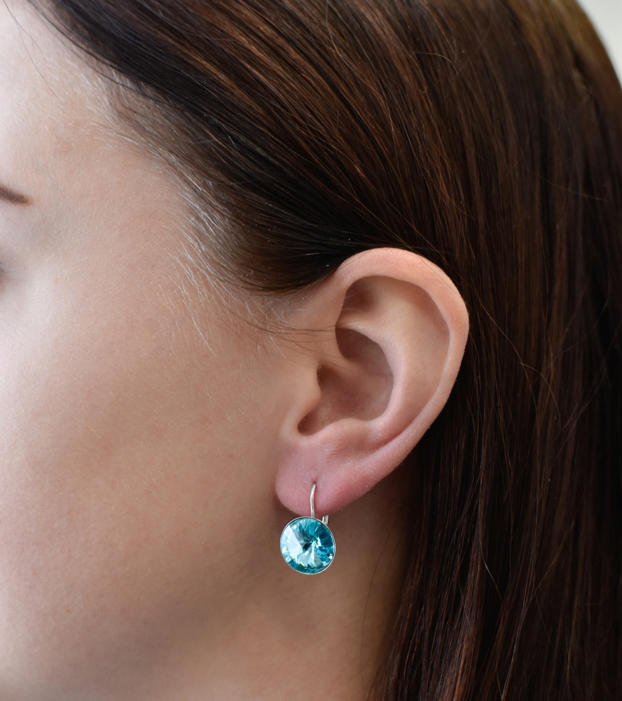 Zháňate jednoduché visiace náušnice v zaujímavej farbe? Vyskúšajte napríklad strieborné náušnice 31106.3 s blankytne modrým Swarovski kryštálom.