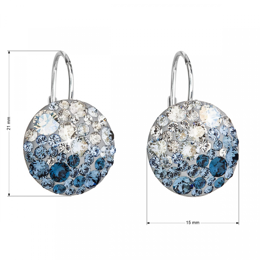 Parametre strieborných náušníc visiace s kryštálmi Swarovski modré okrúhle 31176.3 ice blue