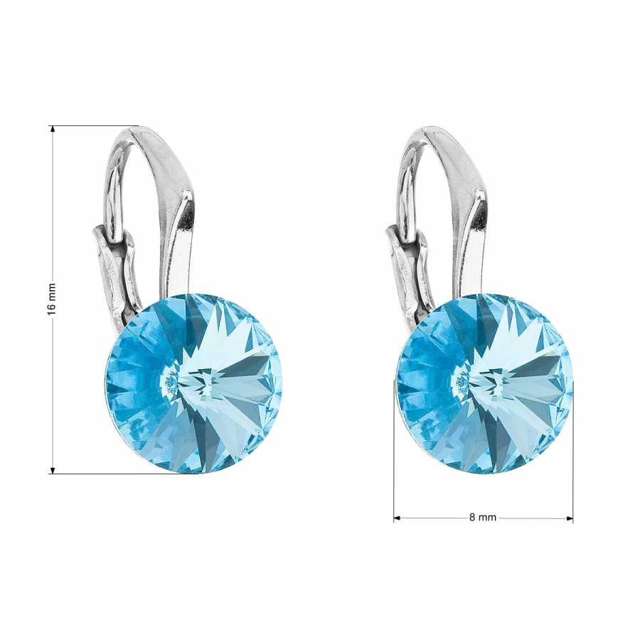 Parametre strieborných visiacich náušníc s kryštálmi Swarovski modré okrúhle 31229.3 aqua
