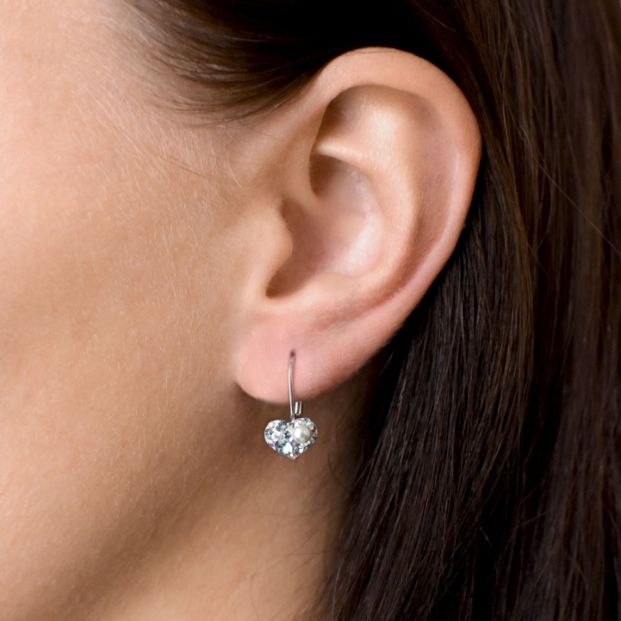 Visiace náušnice 31125.9 v tvare srdca sú vyrobené zo striebra o rýdzosti 925/1000 s povrchovou úpravou ródiom a sú bohato zdobené malými trblietavými kryštálmi Swarovski v modrej farbe. Náušnice navyše zdobí ešte Swarovski perlička v bielej farbe. Náušnice zapnete na klapku , ktorá ich spoľahlivo ochráni proti nechcenej strate. Do náušníc nie je pridaný nikel , a tak ich bez obáv môžu nosiť aj alergici.