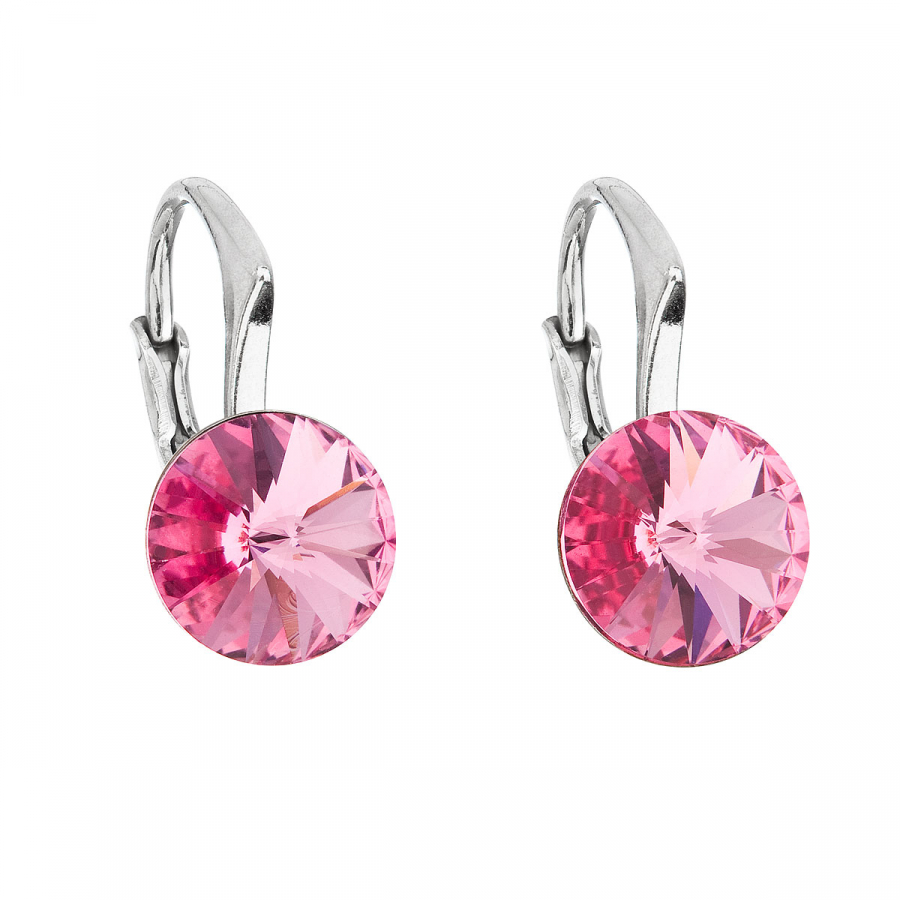 Strieborné náušnice visiace s kryštálmi Swarovski ružové okrúhle 31229.3