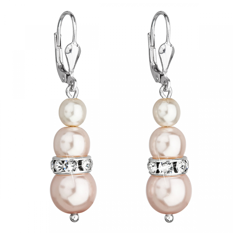 Strieborné náušnice visiace so syntetickými perlami a kryštálmi Swarovski ružové okrúhle 31150.3