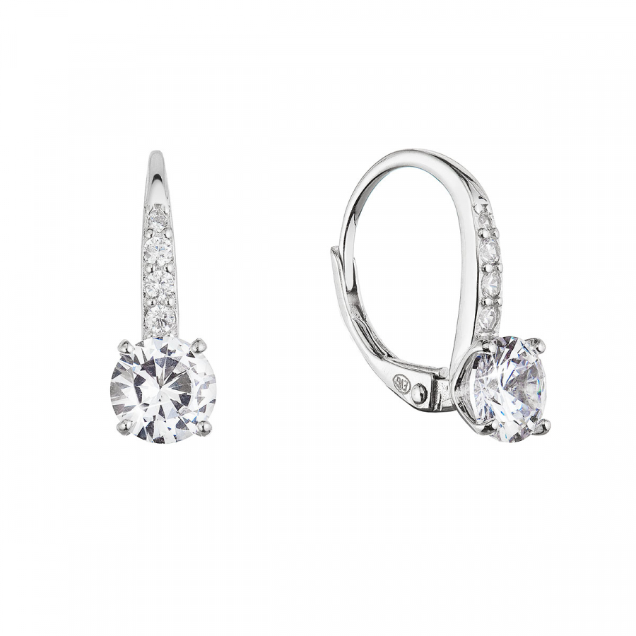 Strieborné náušnice visiace so zirkónmi bielej 11450.1