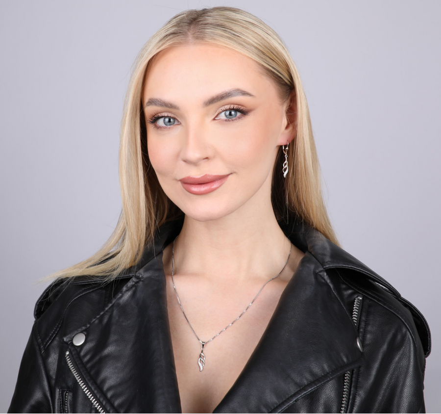 K plesovým šatám často vyberáme výrazné dlhé náušnice, ktoré náš slávnostný outfit nádherne doplnia. Vyskúšajte dlhé visiace náušnice so zirkónmi v tvare vlnky!