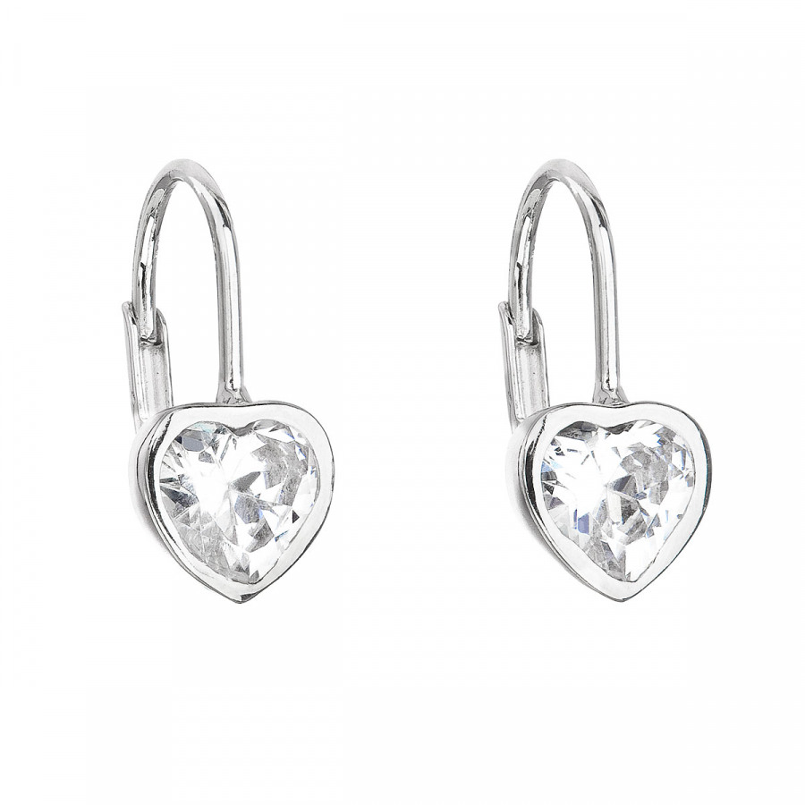 Strieborné náušnice visiace so zirkónom biele srdce 11185.1