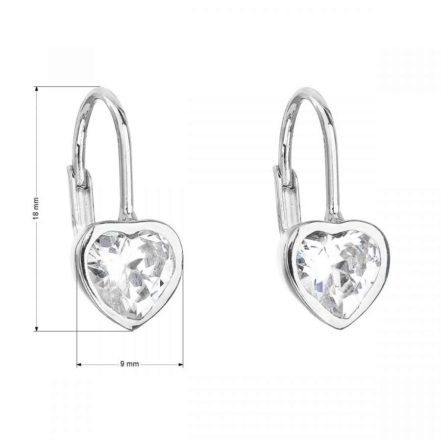 Parametre strieborných visiacich náušníc so zirkónom biele srdce 11185.1