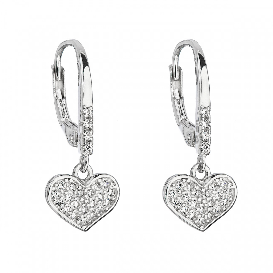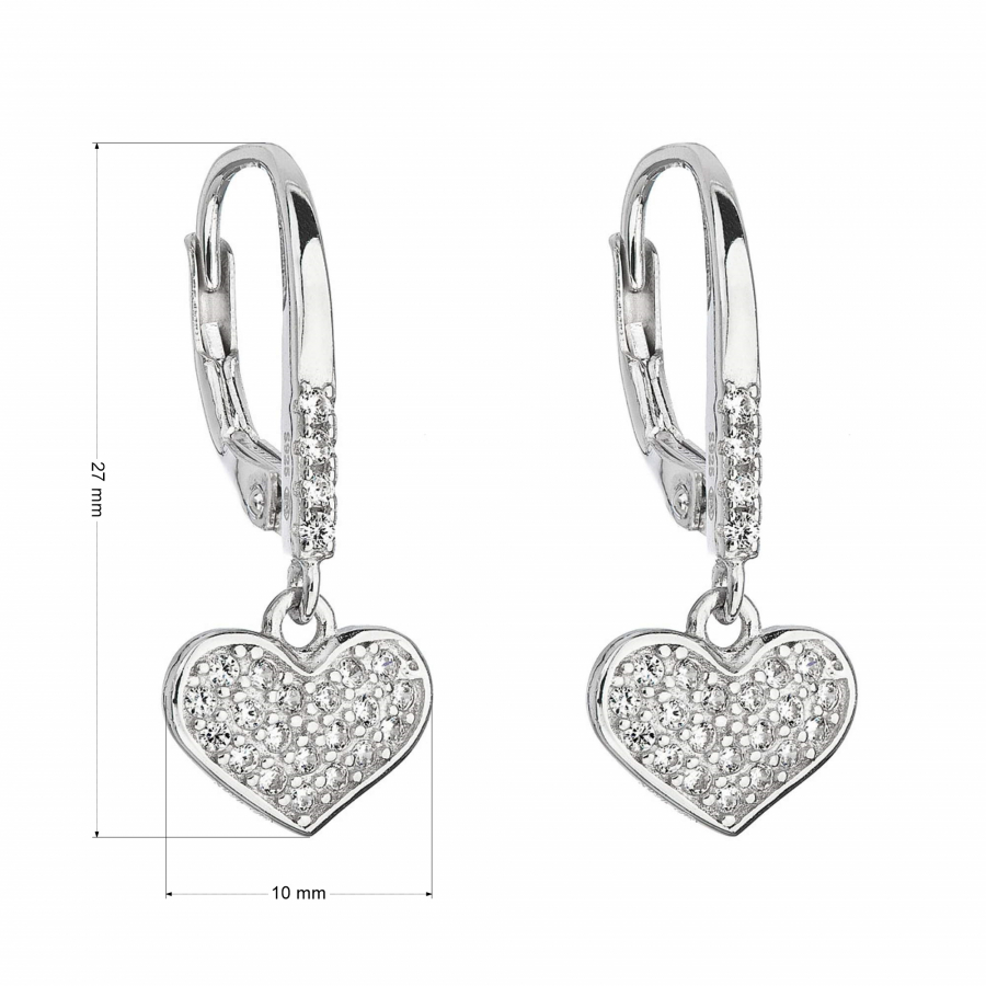 Strieborné náušnice visiace so zirkónom biele srdce 11301.1