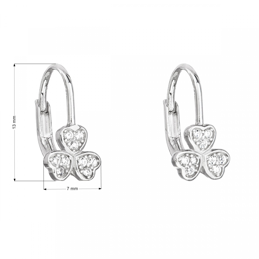 Parametre strieborných visiacich náušníc so zirkónom biely trojlístok 11209.1