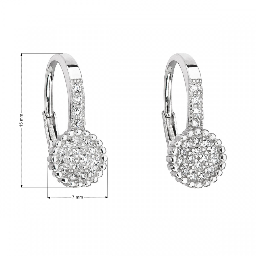 Parametre strieborných visiacich náušníc so zirkónom v bielej farbe 11191.1