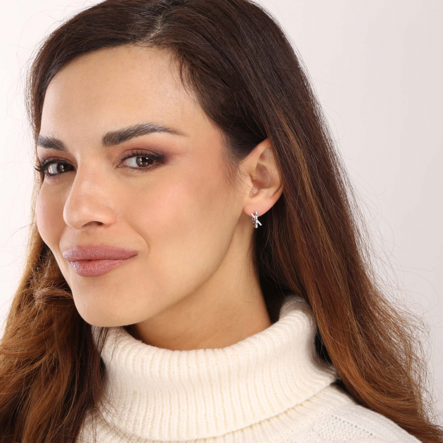 Náušnice v tvare "X" sú vyrobené z kvalitného striebra rýdzosti 925/1000 . Striebro obsahuje vrstvu ródia, ktorá ho chráni proti sčerneniu, žltnutiu i poškriabaniu. Náušnice zaujmú vďaka striebru leštenému do plošiek vďaka ktorým sa prirodzene odráža ich lesk do všetkých strán a navyše ich ligot dopĺňajú malé zirkóny. Náušnice sa zapínajú na krúžok a keďže neobsahujú prídavok niklu, môžu si nimi uši ozdobiť aj ženy, ktoré sú náchylné na alergické reakcie.