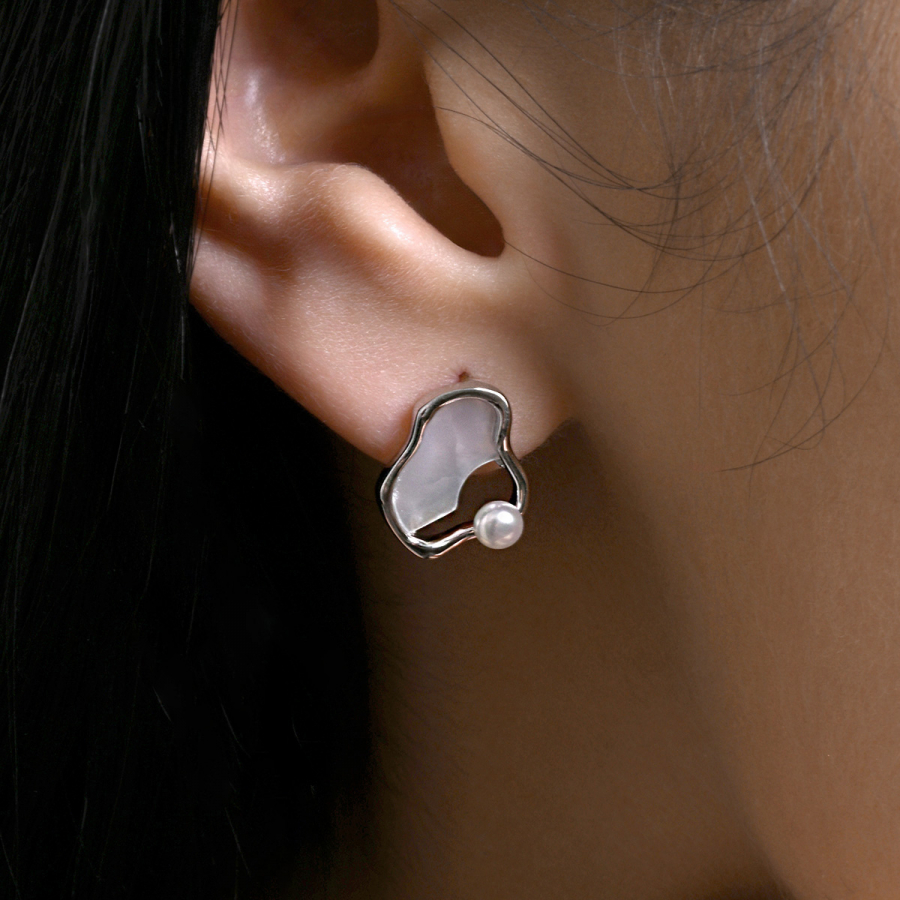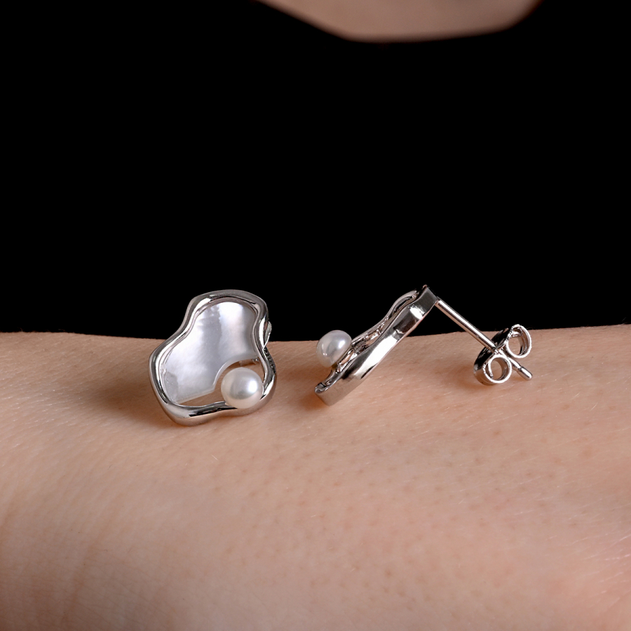 Strieborné nepravidelné náušnice s riečnou perlou 21120.1