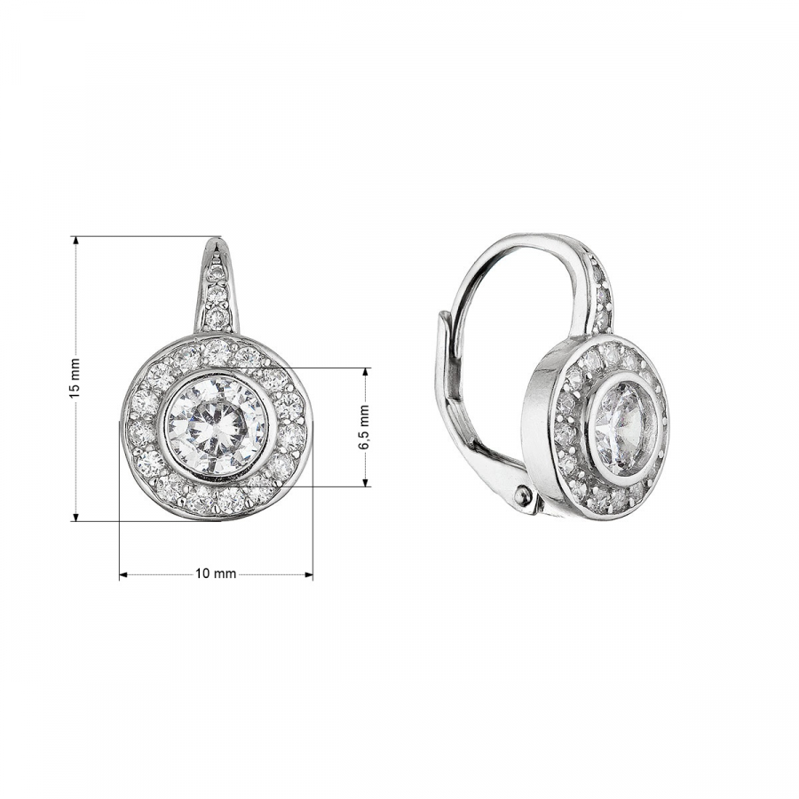 Objavte žiarivú krásu strieborných náušníc 11620.1, ktoré očarí svojim elegantným dizajnom a trblietaním čírych zirkónov. Tieto visiace náušnice v okrúhlom tvare sú vyrobené zo striebra o rýdzosti 925/1000 a pre vyššiu odolnosť a dlhotrvajúci lesk sú opatrené ródiovou úpravou.