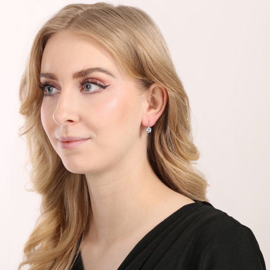 Náušnice sú zdobené kryštálovým zirkónom uprostred, ktorý je obklopený strieborným rámčekom s prerušovane dierovaným vzorom v tvare obdĺžnikov. Náušnice majú praktické zapínanie na klapku , ktoré zaisťuje pohodlné a bezpečné nosenie. Sú ideálnym darčekom alebo elegantným doplnkom pre špeciálne príležitosti.