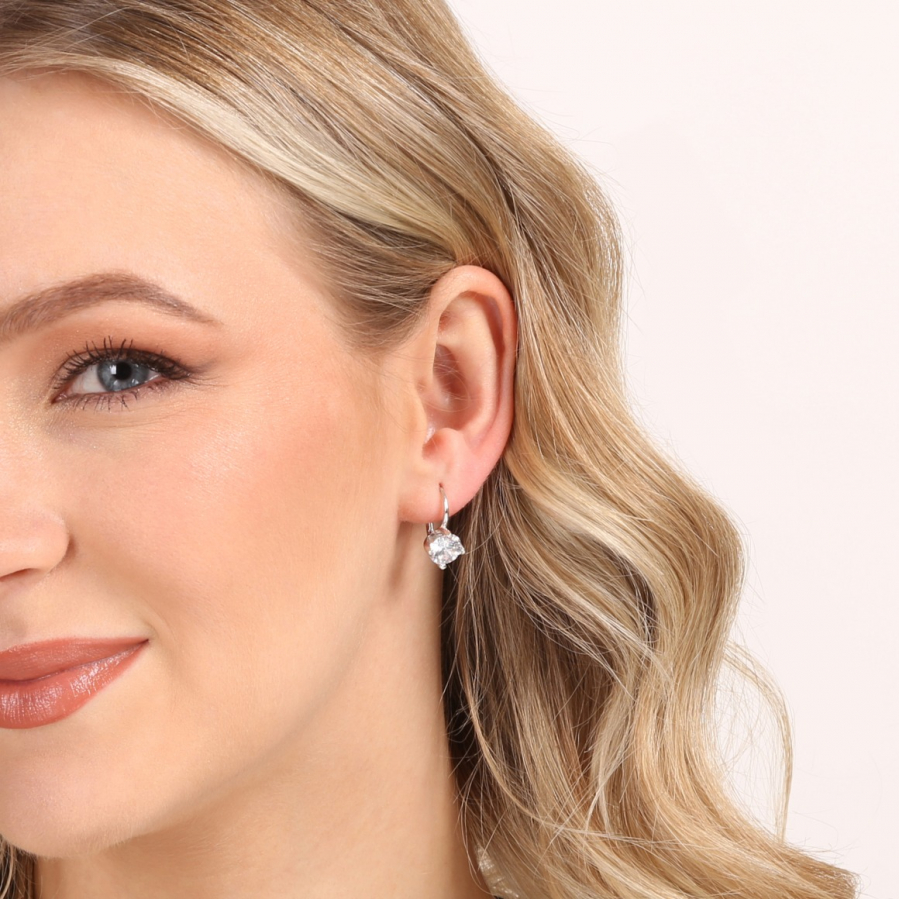 Šperk je vyrobený zo striebra rýdzosti 925/1000, na ktorého povrchu sa nachádza vrstva ródia. Ródium náušnice chráni proti sčerneniu, zožltnutiu i poškriabaniu. Tieto visiace náušnice zdobia kryštál v okrúhlom tvare , ktorý dodáva celému šperku elegantný vzhľad. Vďaka zapínaniu na klapku sa ľahko nasadzujú a bezpečne držia na uchu. Dĺžka náušnice je 17 mm a priemer kryštálu 8 mm.