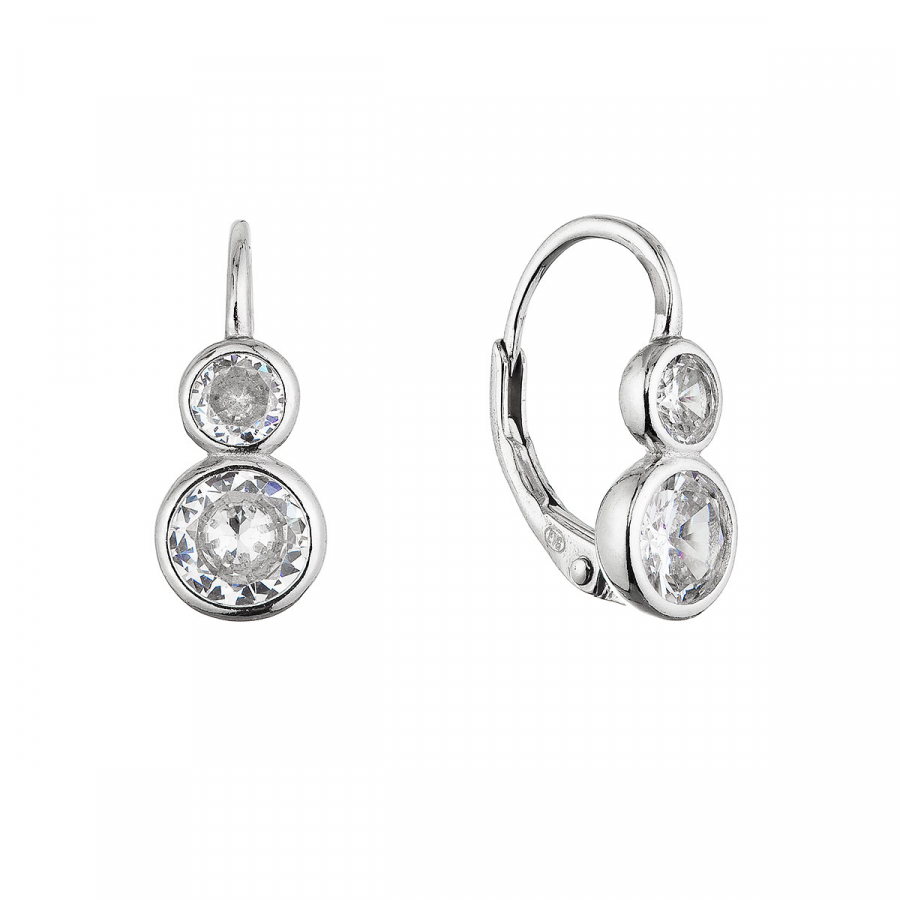 Strieborné visiace náušnice 11619.1 o rýdzosti 925/1000 s úpravou ródiom okúzlia svojim elegantným dizajnom založeným na harmónii tvarov a jemnom lesku. Náušnice tvoria dva na seba nadväzujúce kruhy – menšie hore a väčšie pod ním – ktoré spoločne vytvárajú dynamický, ale zároveň vyvážený vzhľad.