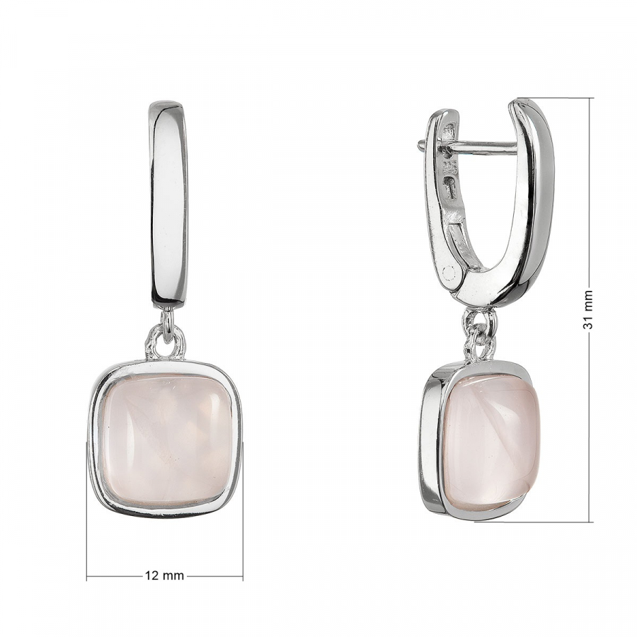 Náušnice sú vyrobené z rýdzeho striebra 925/1000 s povrchovou úpravou ródiom , ktorá zaisťuje mimoriadny lesk a ochranu pred oxidáciou. Dizajn náušníc tvorí jemný strieborný štvorček, ktorý je vyplnený pravým ruženínom v nežne ružovej farbe. Pri každom pohybe sa náušnice ľahko pohupujú a vytvárajú jedinečnú choreografiu svetla a tieňa - ako tanečnica, ktorá vyjadruje vnútornú harmóniu a silu.