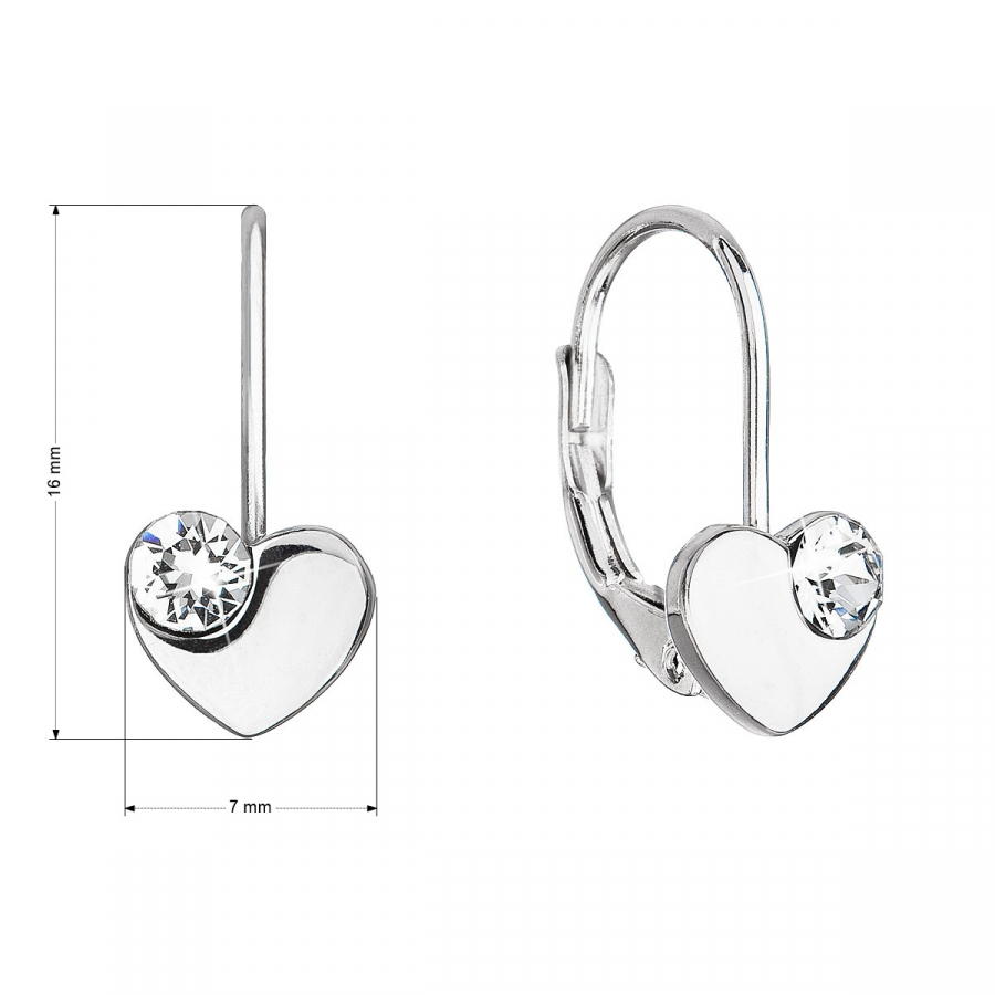 Strieborné visiace náušnice so Swarovski kryštálmi srdiečka 31299.1 biele