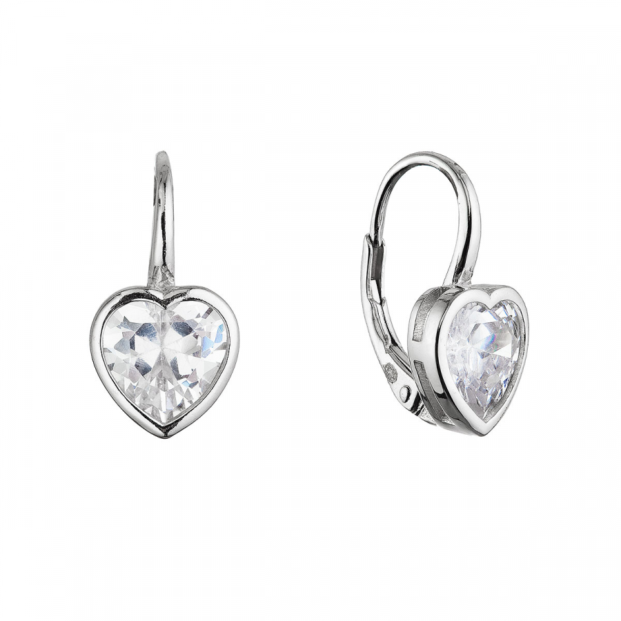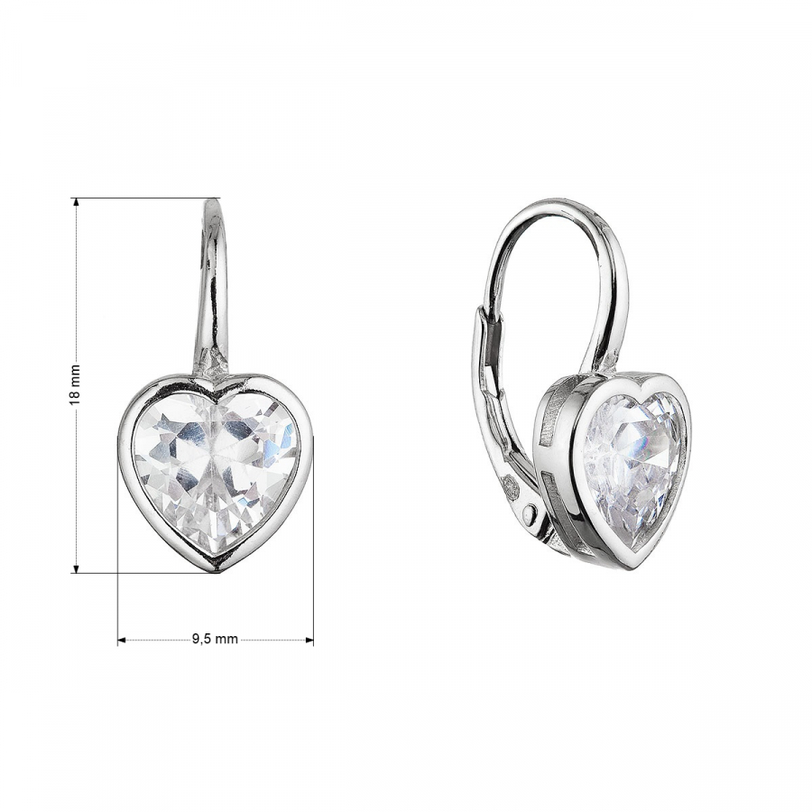 Strieborné náušnice 11648.1 z kvalitného striebra 925/1000 s ródiovou úpravou očarí romantickým dizajnom v tvare srdca, ktorý je ideálny na vyjadrenie nežných emócií. Dominantným prvkom každej náušnice je veľký zirkón vo farbe kryštál brúsený do tvaru srdca, ktorý žiari svojou čistotou a jemným leskom.