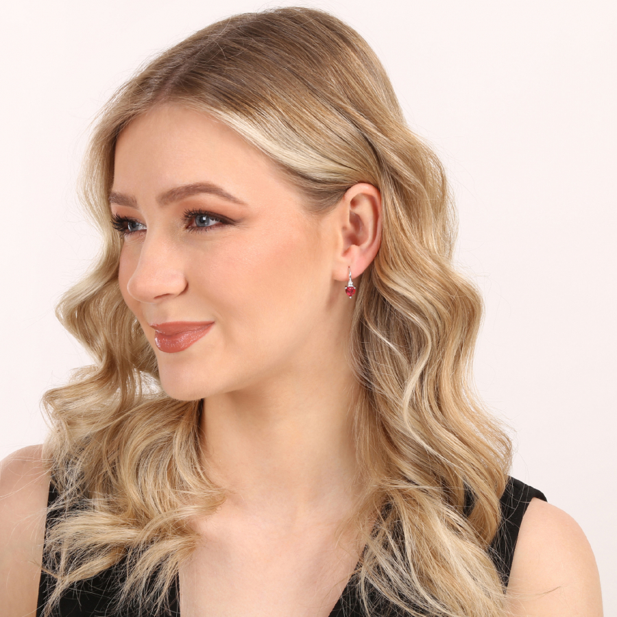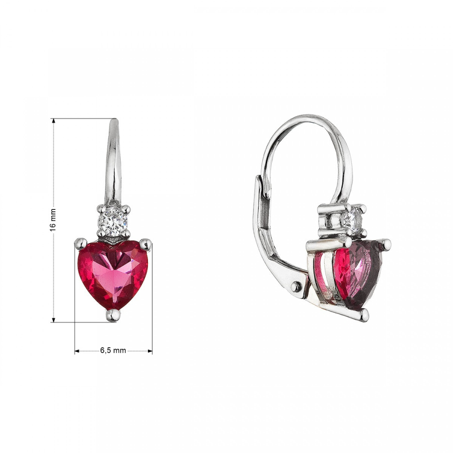 Strieborné visiace náušnice 11650.3 z kvalitného striebra 925/1000 s ródiovou úpravou zaujmú svojim romantickým a elegantným dizajnom v tvare srdca. Dominantou každej náušnice je výrazný zirkón v sýto červenej farbe ruby, zasadený do jemnej kovovej konštrukcie, ktorá je efektne rozpolená a dodáva šperku ľahkosť a moderný výraz.