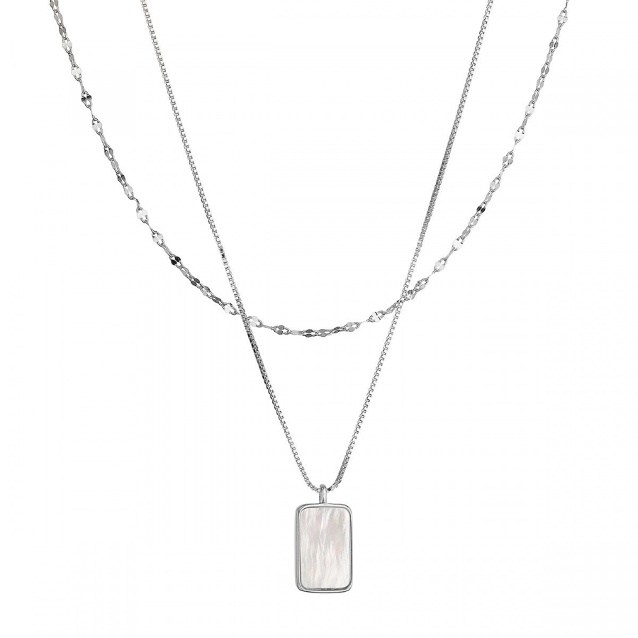Strieborný dvojitý náhrdelník s bielou perleťou 12155.1