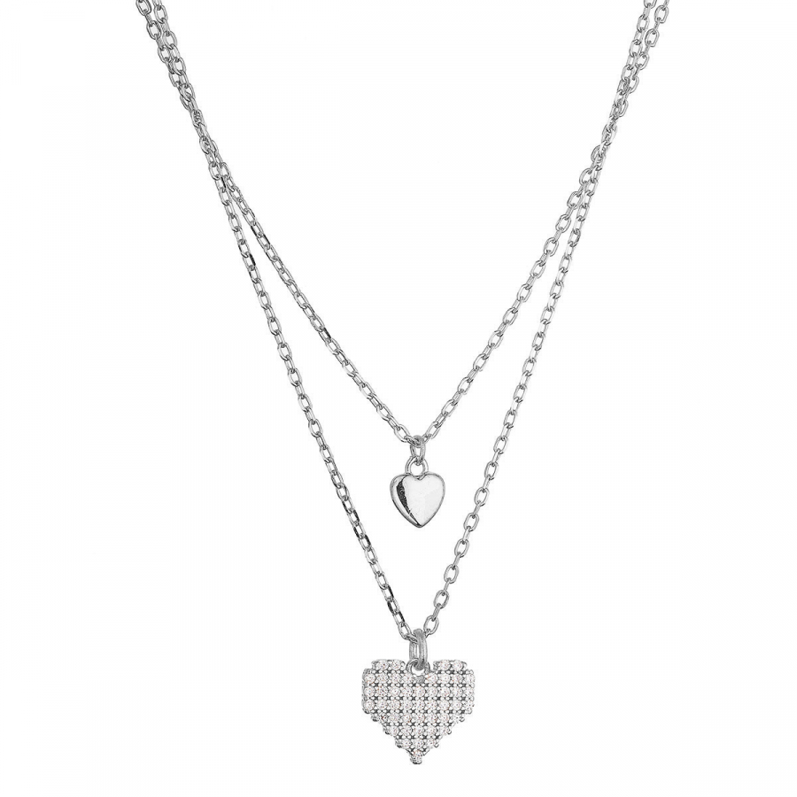 Strieborný dvojradový náhrdelník srdiečka 12153.1
